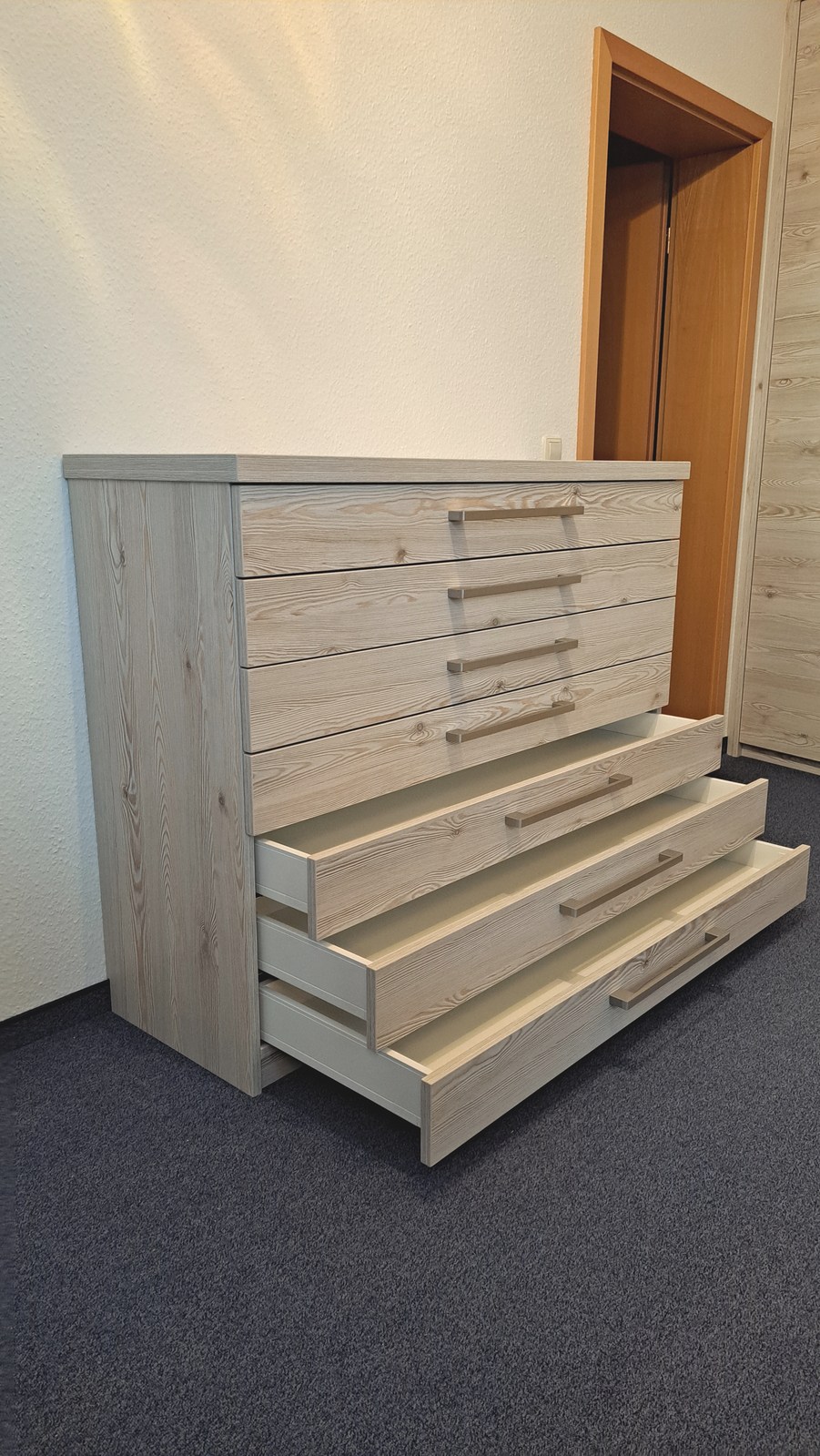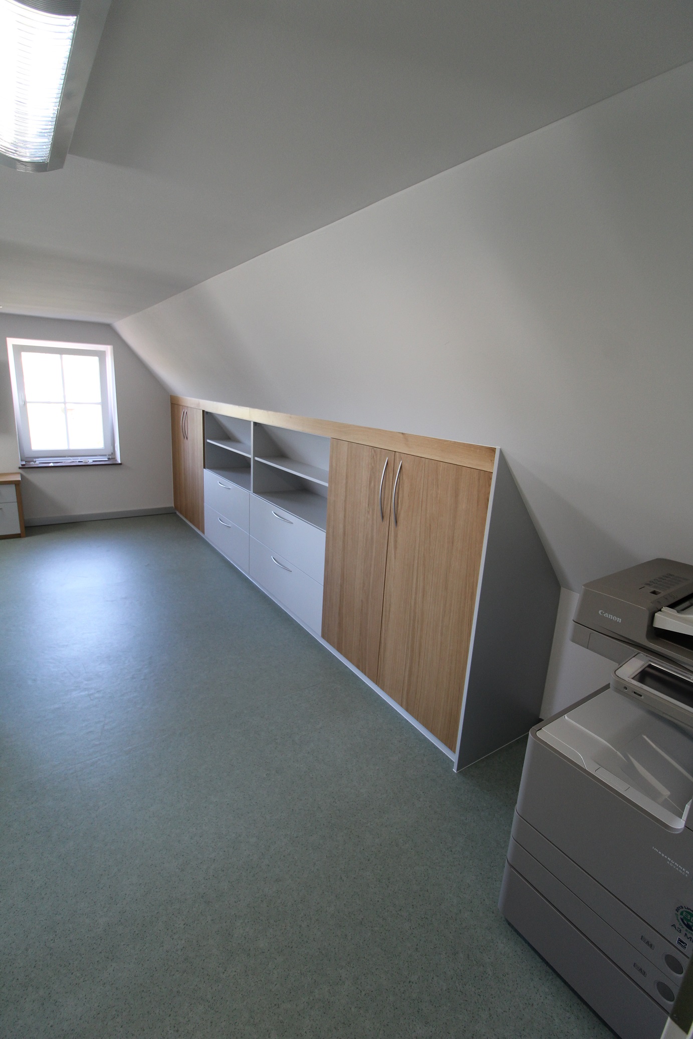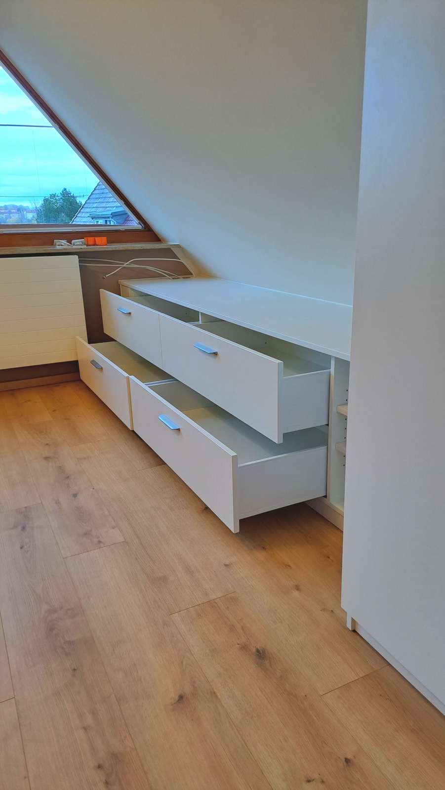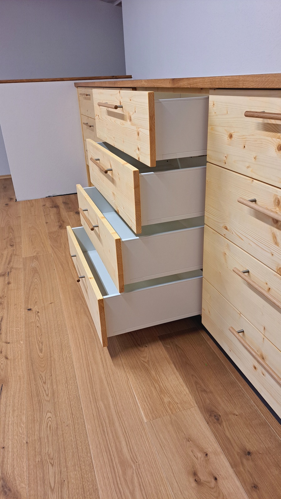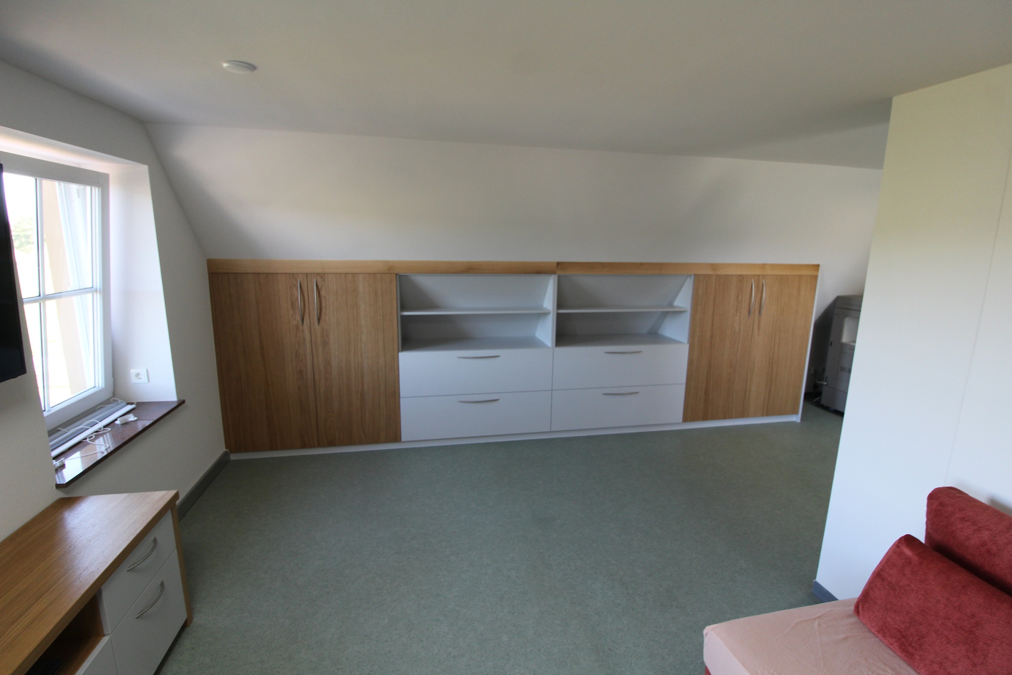 Anfertigung eines Dachschrägenschrankes mit Inneneinteilung nach Kundenwunsch sowie ein Sideboard mit 7 großen Schubkästen