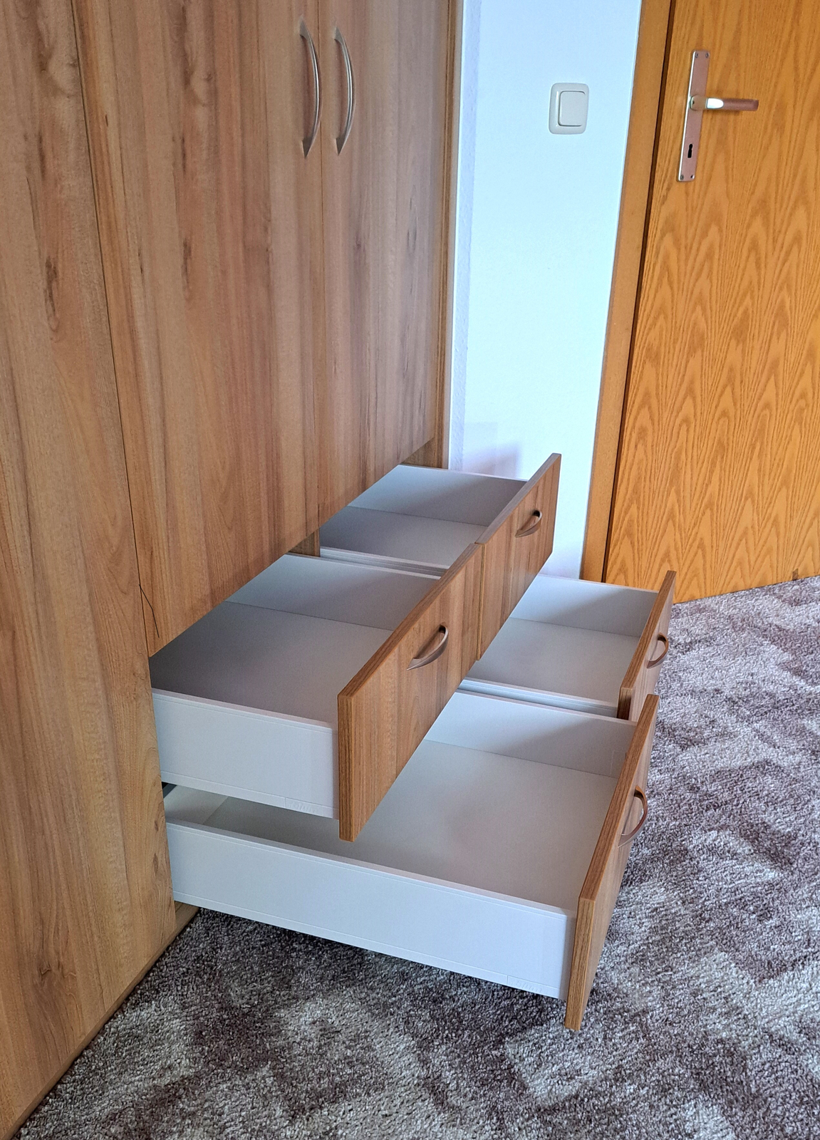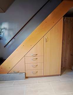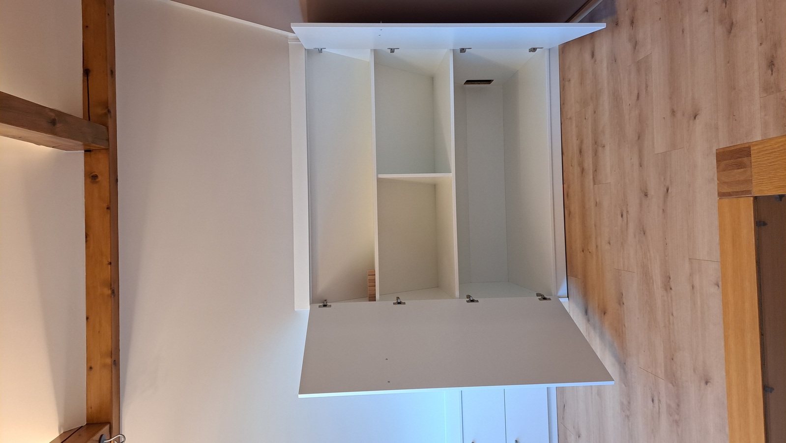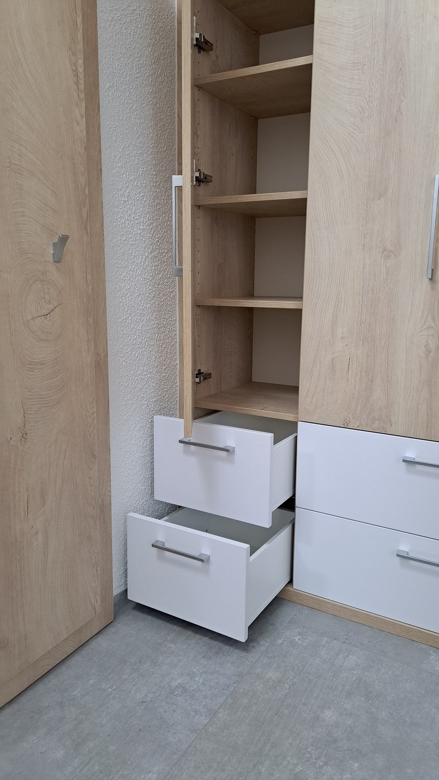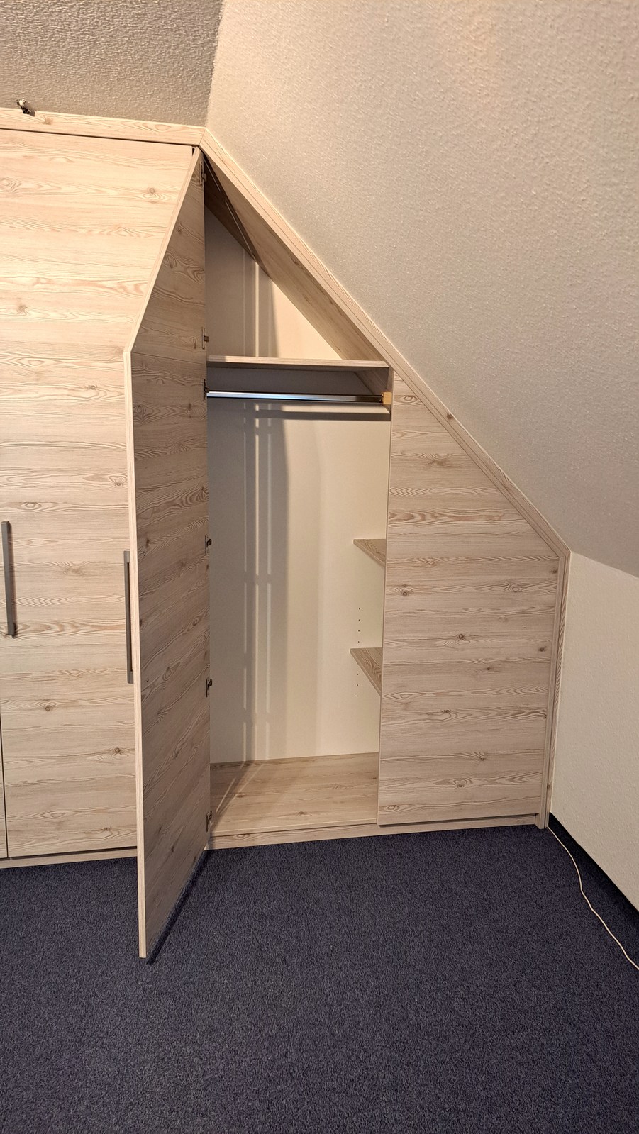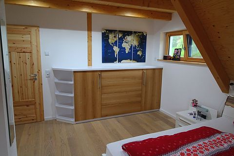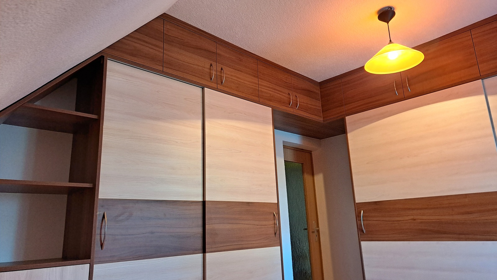 Anfertigung eines Dachschrägenschrankes mit Inneneinteilung nach Kundenwunsch sowie ein Sideboard mit 7 großen Schubkästen