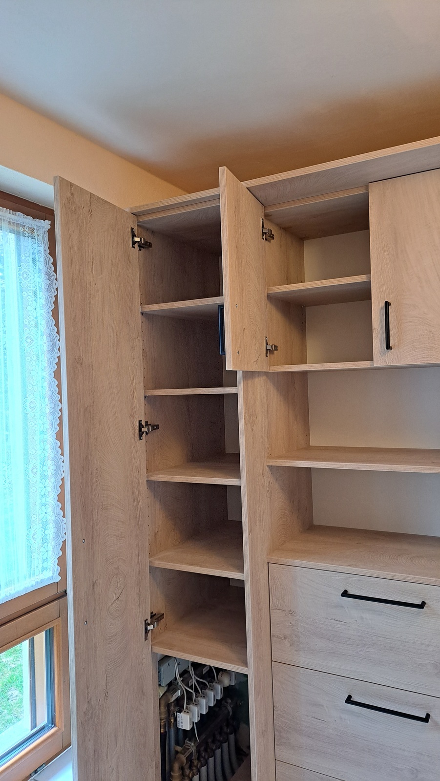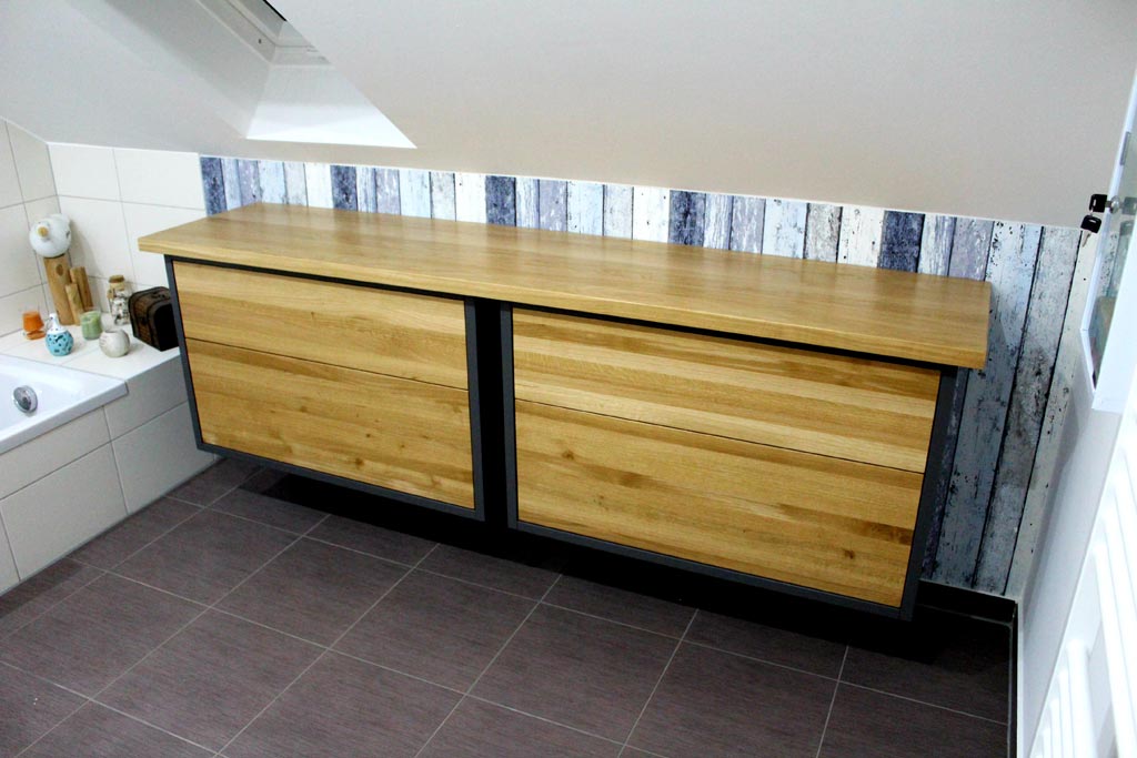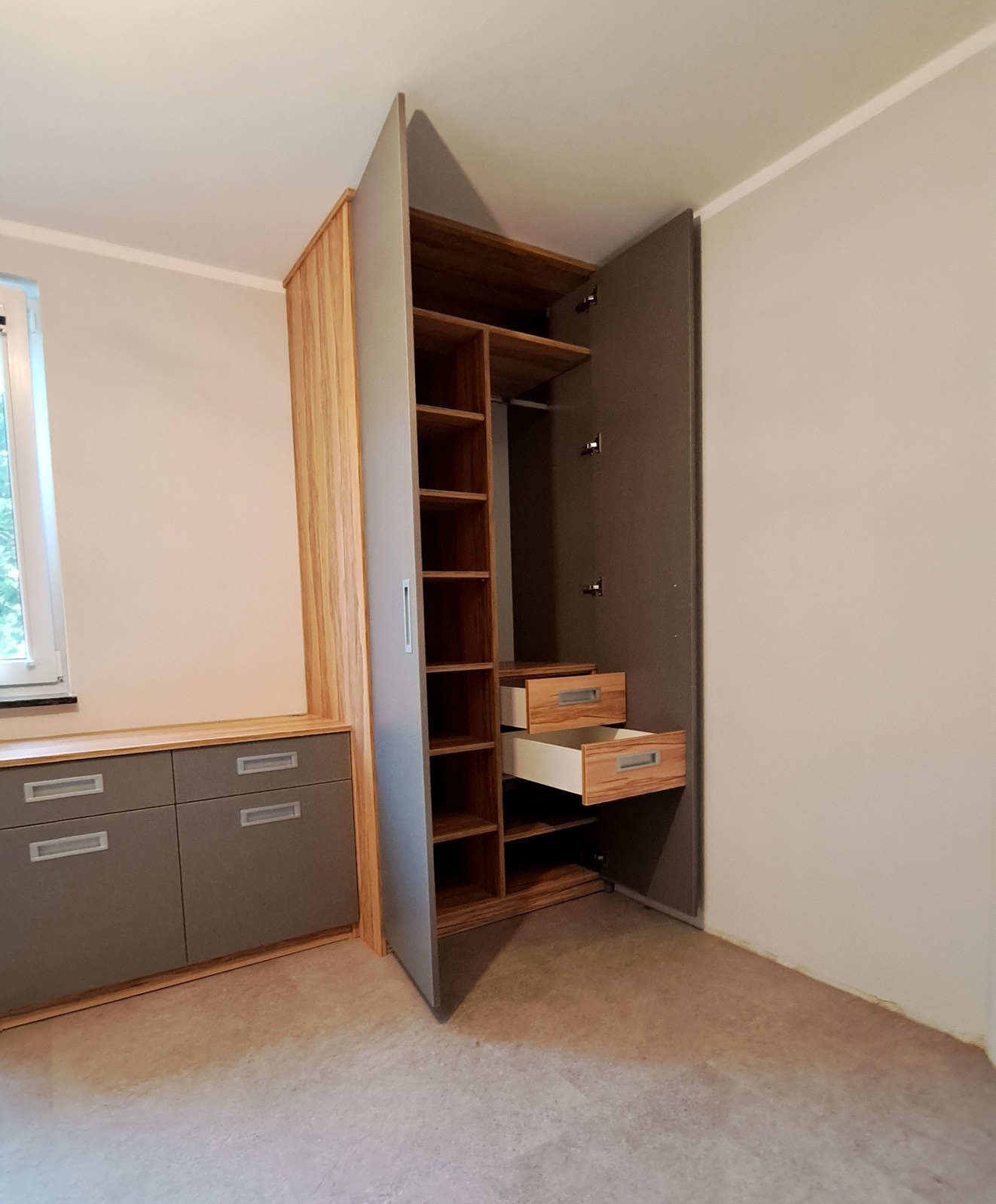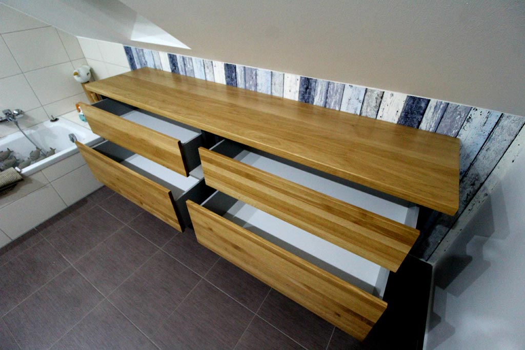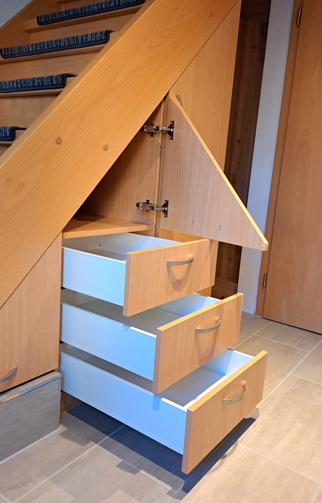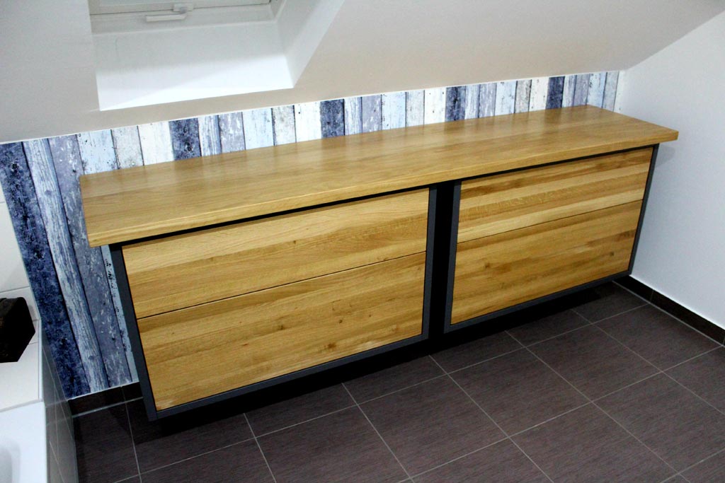 Anfertigung eines Dachschrägenschrankes mit Inneneinteilung nach Kundenwunsch sowie ein Sideboard mit 7 großen Schubkästen