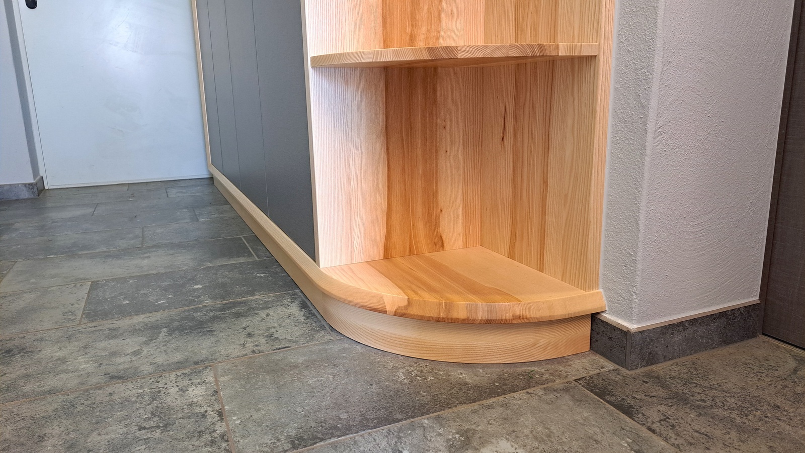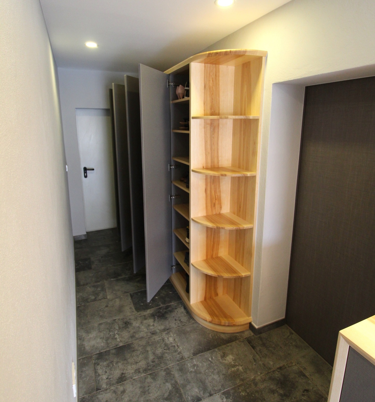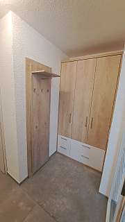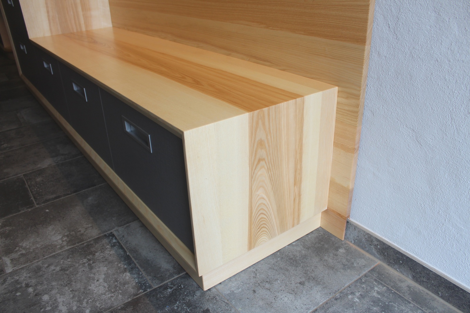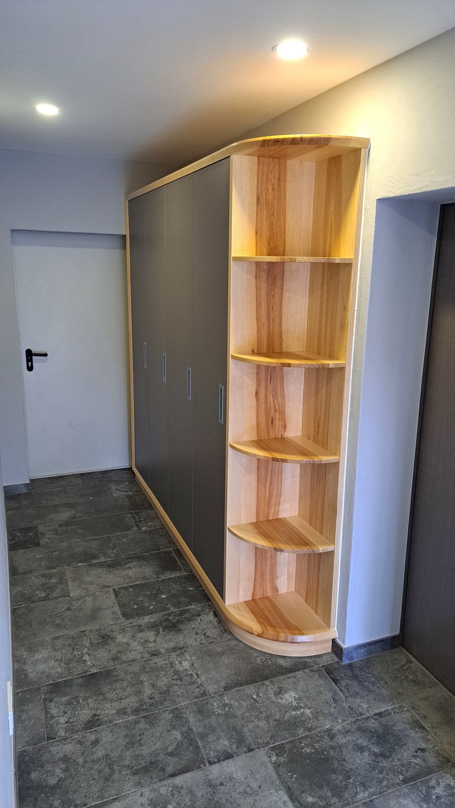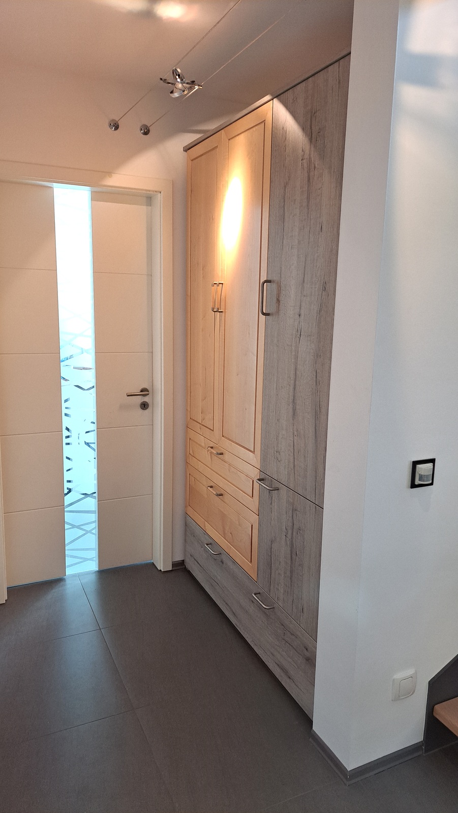 Fertigung einer Garderobe in einem Eigenheim, ein vorhandener Schrank wurde ebenso mit eingearbeitet
