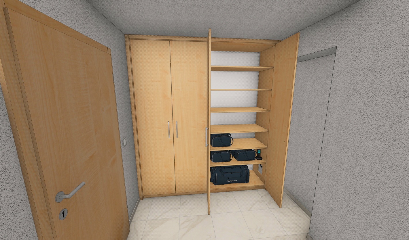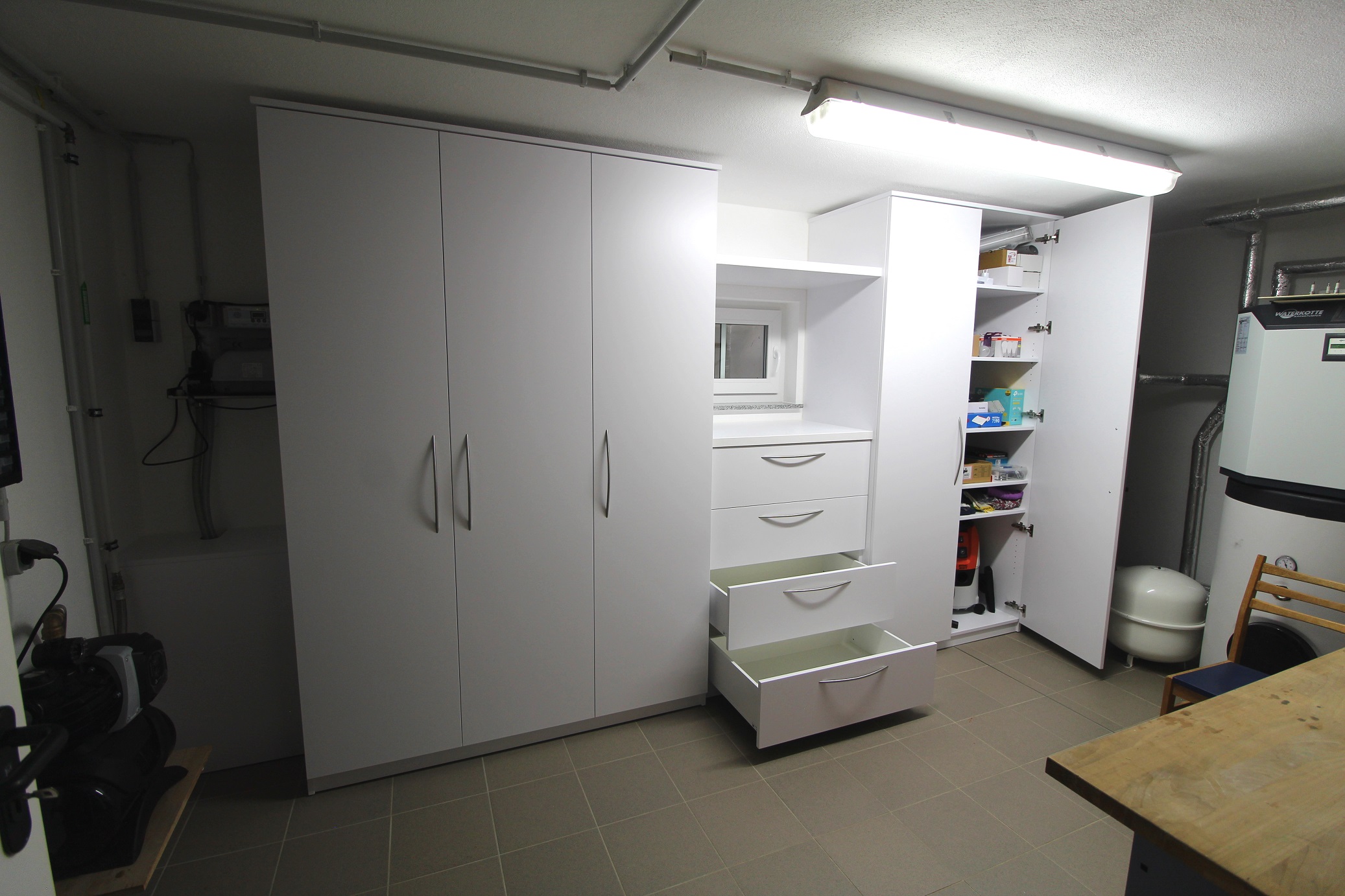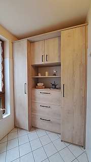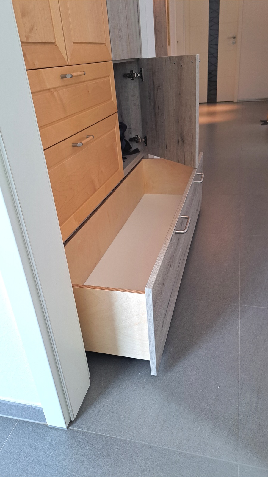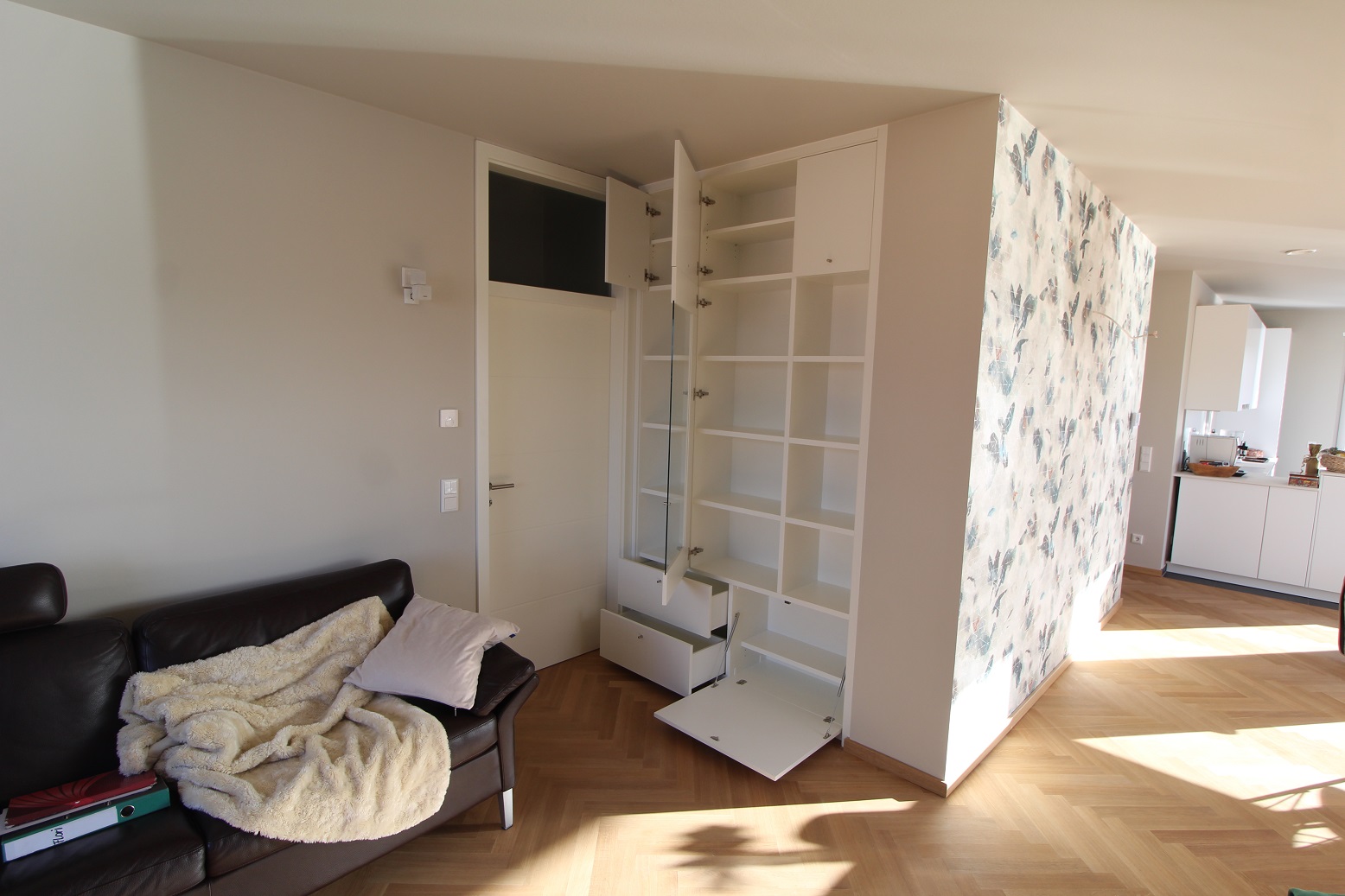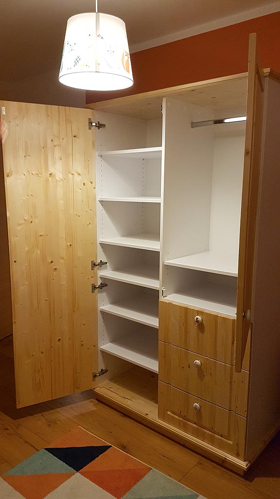Fertigung einer Garderobe in einem Eigenheim, ein vorhandener Schrank wurde ebenso mit eingearbeitet