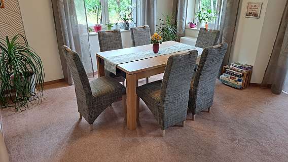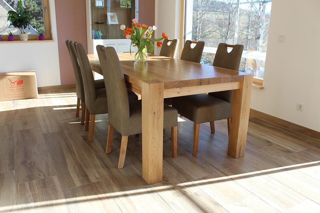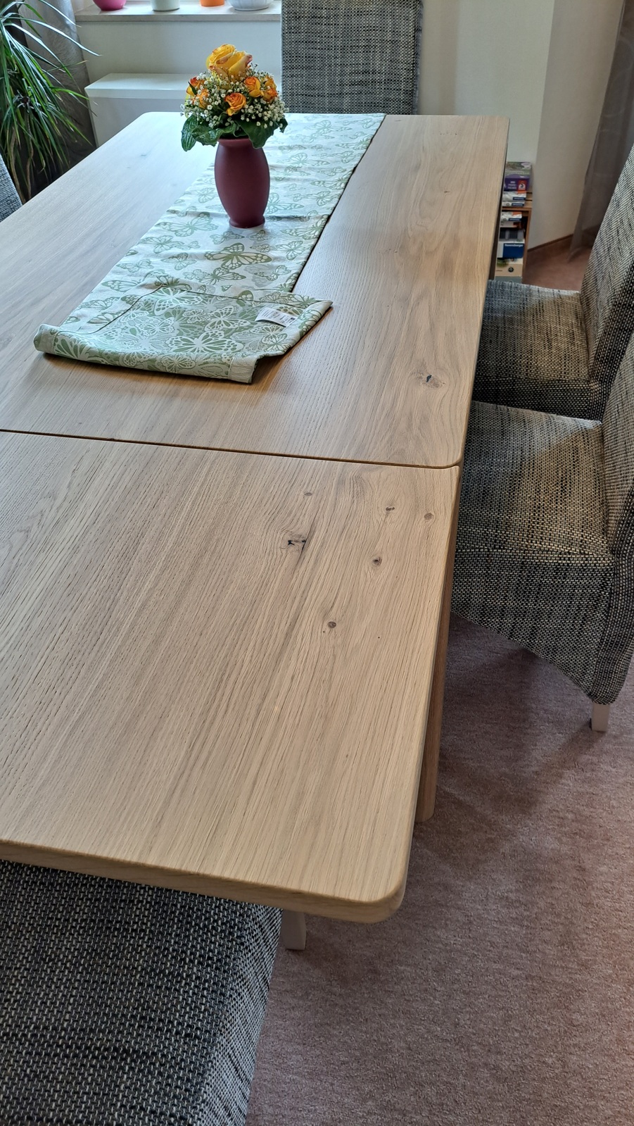 Ein schöner Esstisch aus Eiche, optisch angepasst an vorhandene Möbel.