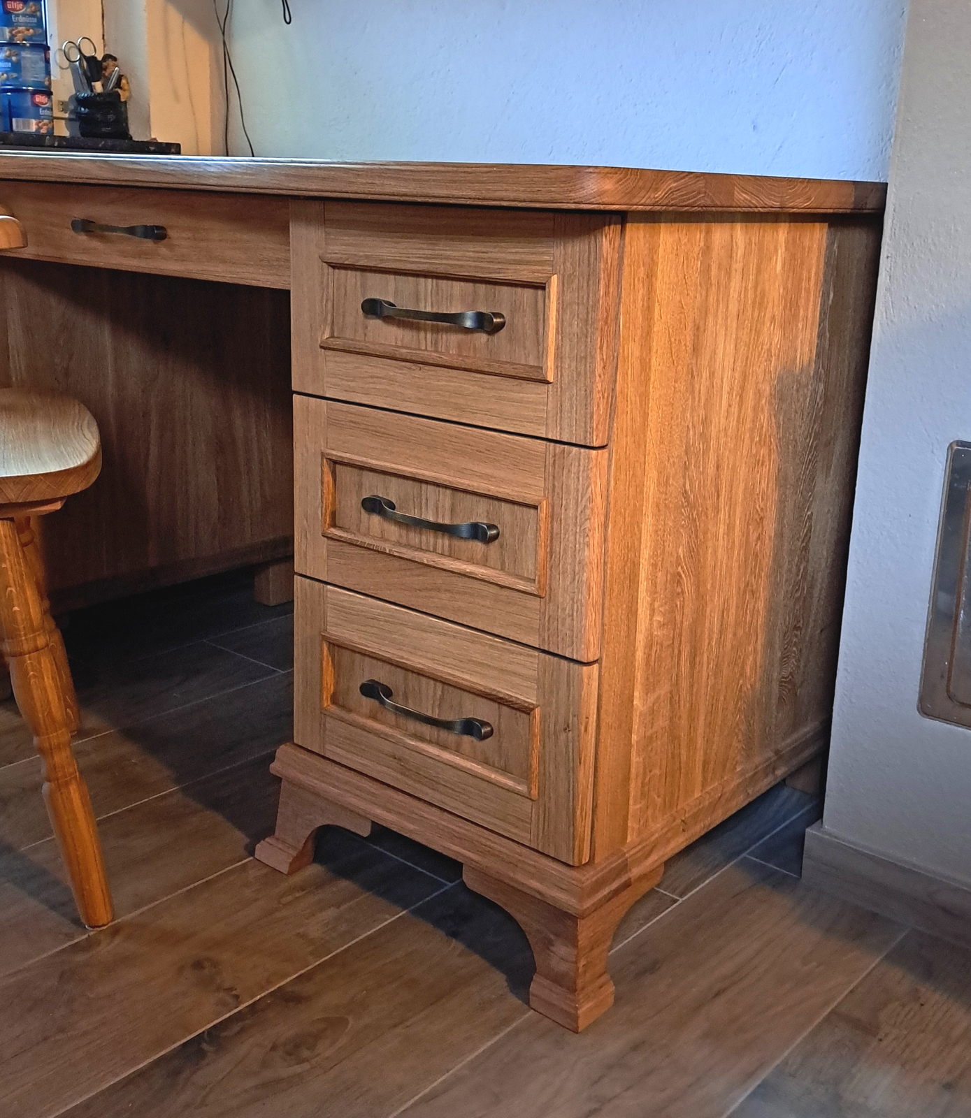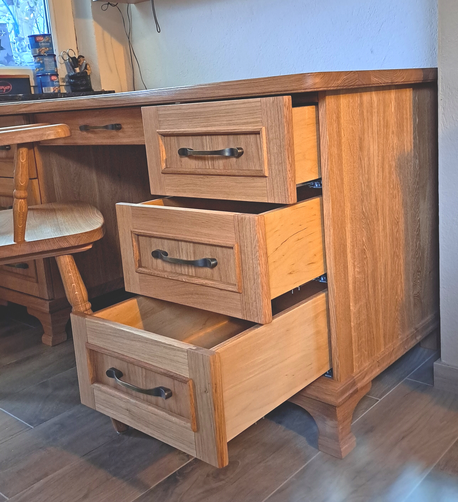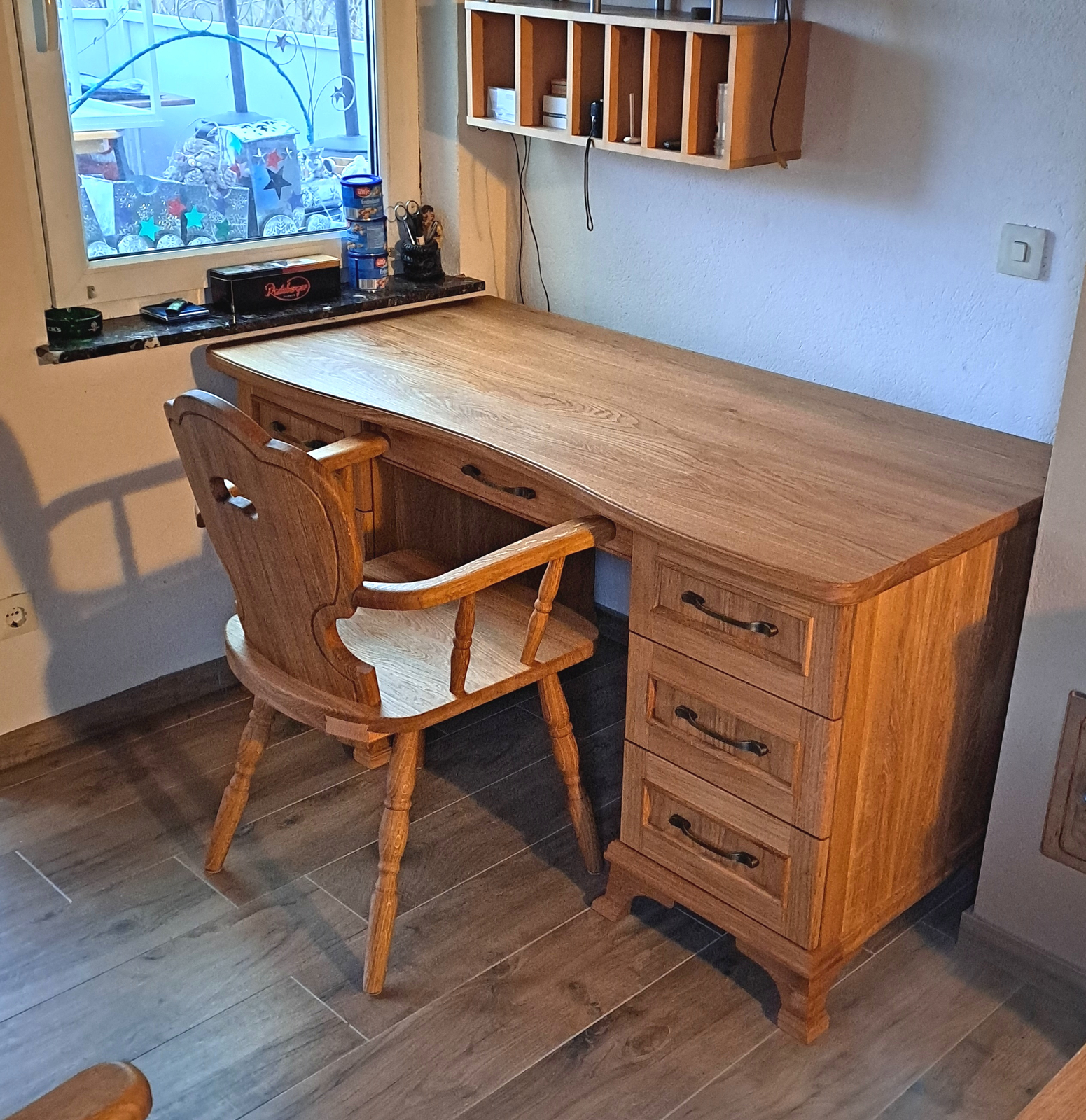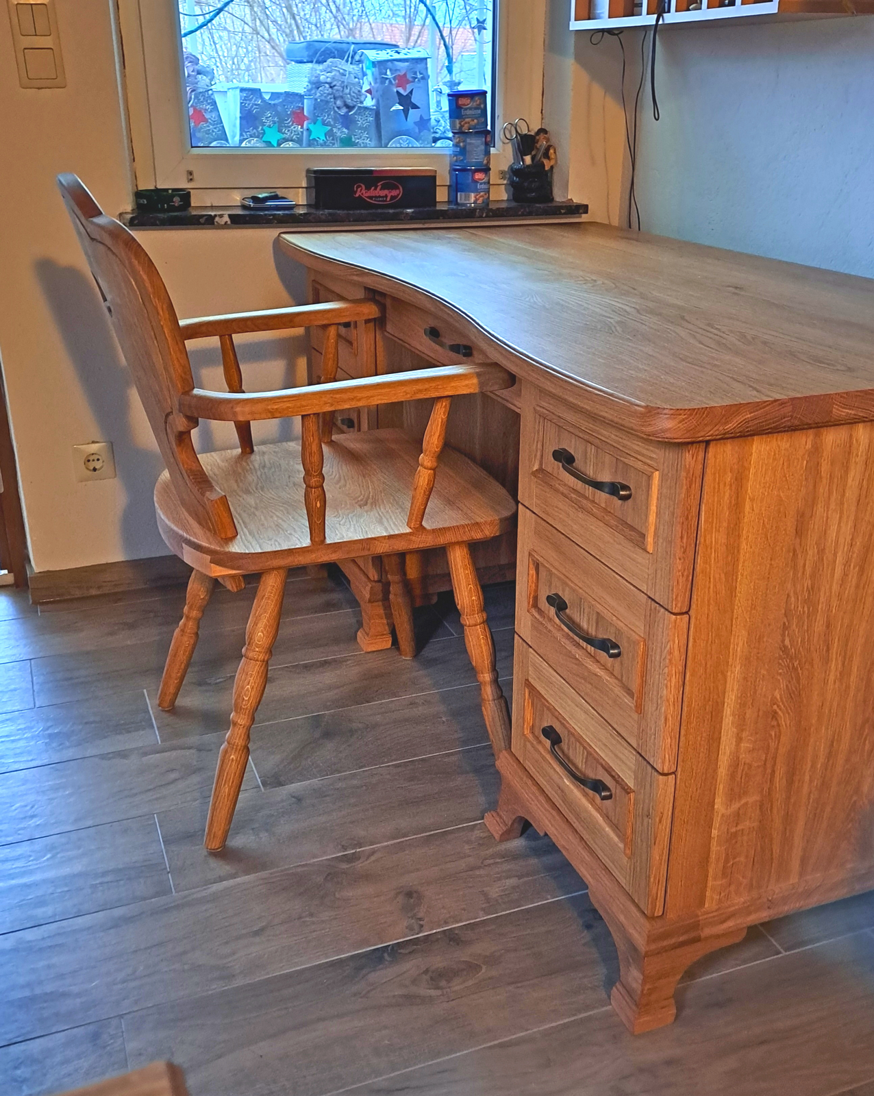 Fertigung eines hochwertigen Schreibtisches aus massiver Eiche sowie Lieferung von Stühlen nach Kundenwunsch