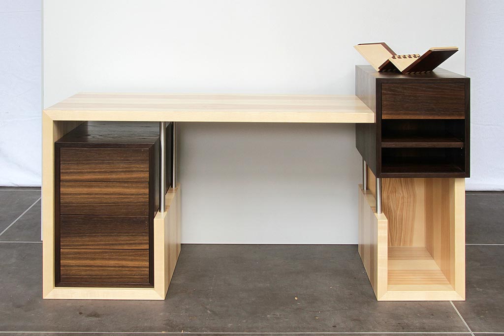 Schreibtisch in Esche und Eiche furniert - Gesellenstück von Florian Baumgart